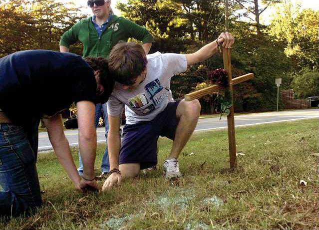 West Forsyth juniors Adam Means, Nick Hancock and Sarah Myers went to the intersection late Thursday after they learned of Payne's death. Near a pile of shattered glass, they hammered a cross in the ground, marking the spot where their friend's vehicle had landed.