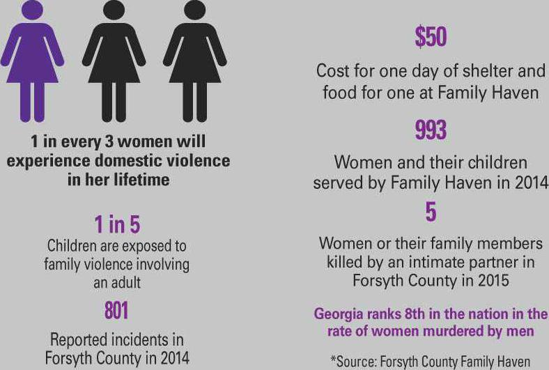 FORSYTH COUNTY -- Every third person, most dressed in purple, stood at their table Thursday. Totaling about two per table, Shandra Dawkins said they represented the ratio of women in the United States who will experience domestic violence in her lifetime. The crowd had just heard testimonies from two women about their survival through domestic violence, though they explained that at times they went so low they became addicted to drugs as a coping mechanism or they thought they may be better off dead, just like her husband said.