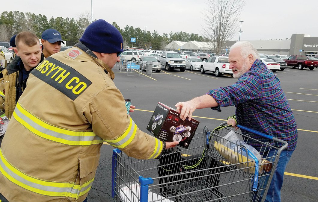 Carter Lanier toted a carton of new toys Friday afternoon, trailing behind father Mitch who hoisted a large bag filled with kids’ stuff over his own head. The two walked toward a group of grinning policemen bundled up for a chilly December day.