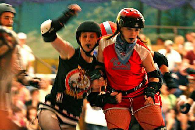 The rollergirls’ attire exemplified the sport’s no-holds-barred capacity for the campy and theatrical.