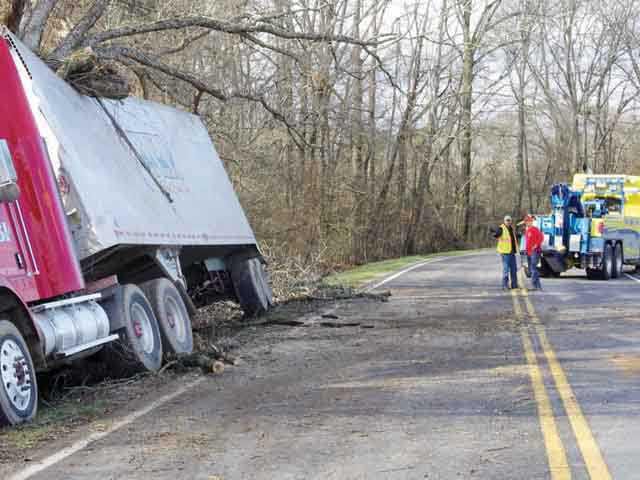 There were no serious injuries Friday morning when a tractor trailer struck a tree after leaving Old Federal Road.