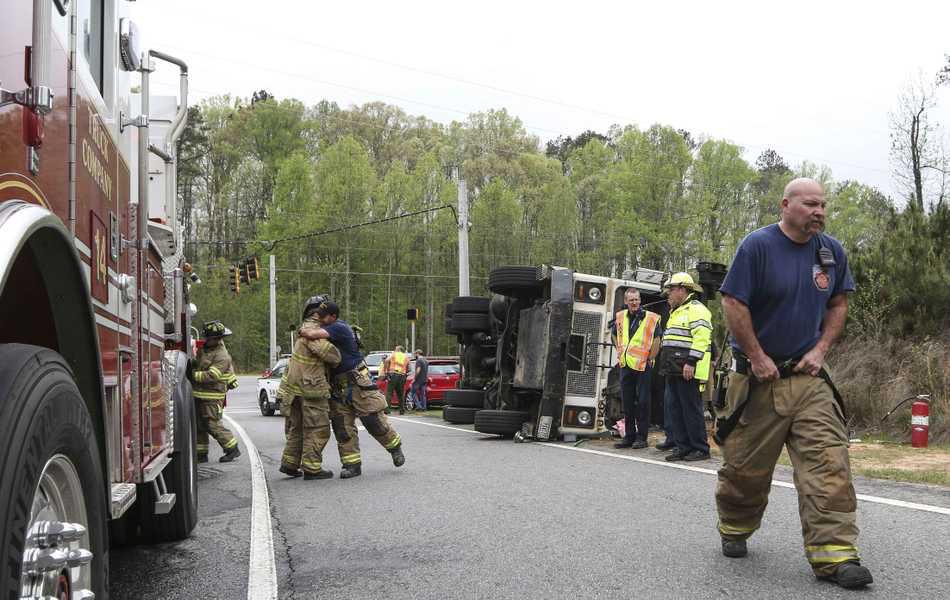 The truck toppled onto its driver’s side, trapping the 37-year-old man in the cab for about 15 minutes but not spilling any trash, according to Forsyth County Fire Division Chief Jason Shivers.