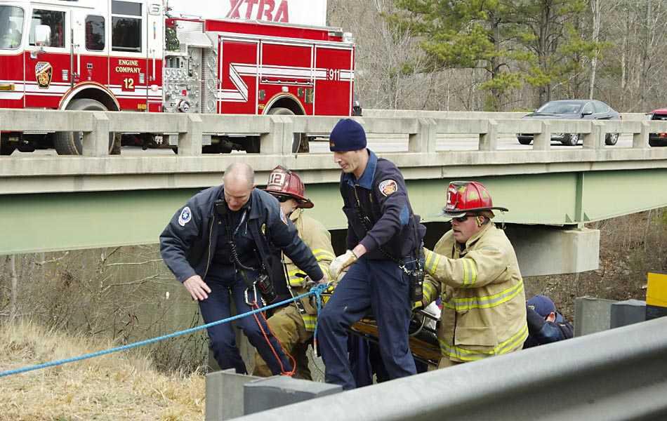 It took Forsyth County firefighters about 30 minutes to free the woman, identified as 33-year-old Samantha Silverman of northwest Forsyth, from the wreckage and get her up the embankment and to the road.