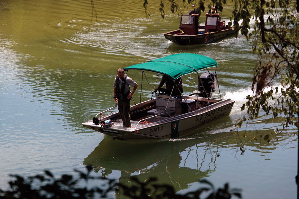 A large contingent of authorities and local volunteers searched the park and Chattahoochee River several times. The effort brought in more than 150 volunteer searchers, including about 20 inmates from the Forsyth County Jail. Law enforcement officers were mobilized from various agencies, including the Gainesville Police Department, U.S. Park Service as well as fire departments from Forsyth County, Johns Creek and Gwinnett County; boats from the Department of Natural Resources; and a Georgia State Patrol helicopter.