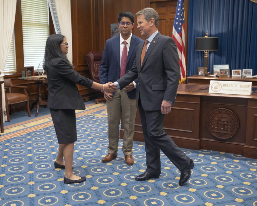 Gov. Brian Kemp recognized two Forsyth County Schools students Wednesday, June 23, for achievements in state-wide contests where they showcased their knowledge on the U.S. Constitution.