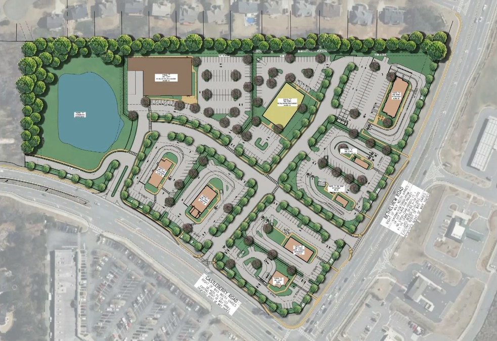 A commercial development including five drive-thru