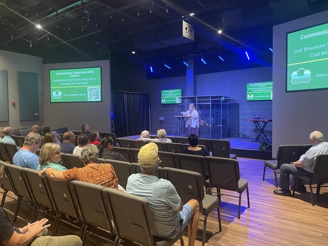 Ahead of a public hearing scheduled for Oct. 20, District 4 Commissioner Cindy Jones Mills and representatives from Toll Brothers held a community meeting to discuss the details of the Coal Mountain Town Center.