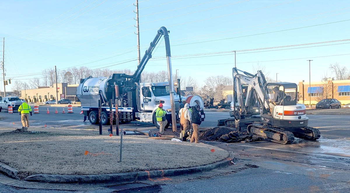A water main break is causing traffic to back up at a busy intersection in Cumming.