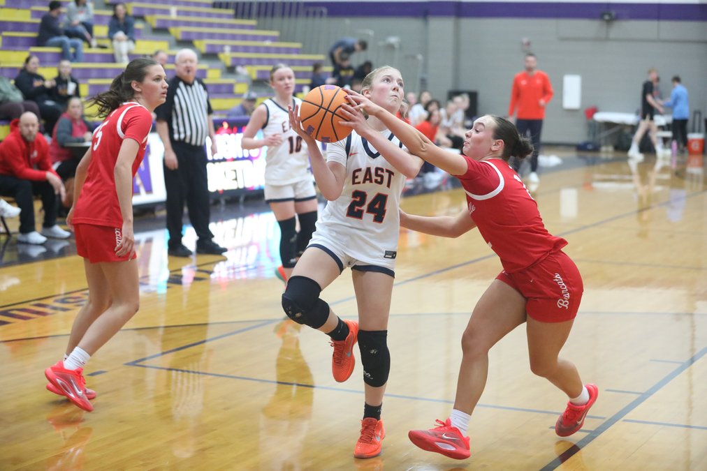East Forsyth's Marlow Douglas goes up for a shot during the first round of a holiday tournament Dec. 29 in Hendersonville, North Carolina. (Submitted photo)