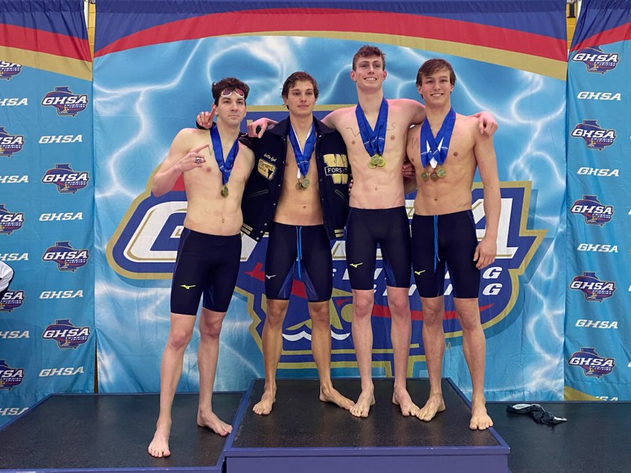 The Wolverines’ relay team broke two more state records at the Class 7A state meet: the 200 free – again – and the 400 free.